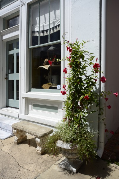 Even this plain shopfront is adorned with flowers.