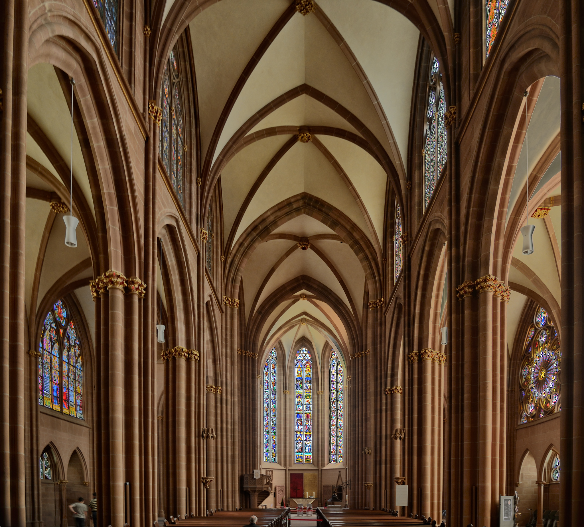 Even though the above window was dark colored, there are so many windows that the interior is brilliantly lit. This is the nave of the high gothic section of the church.