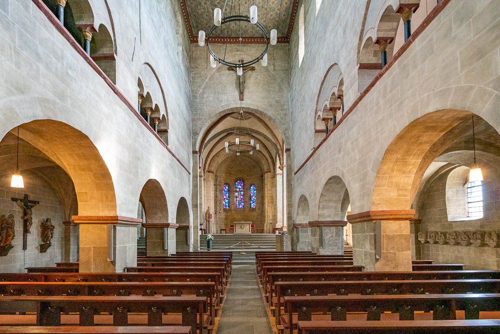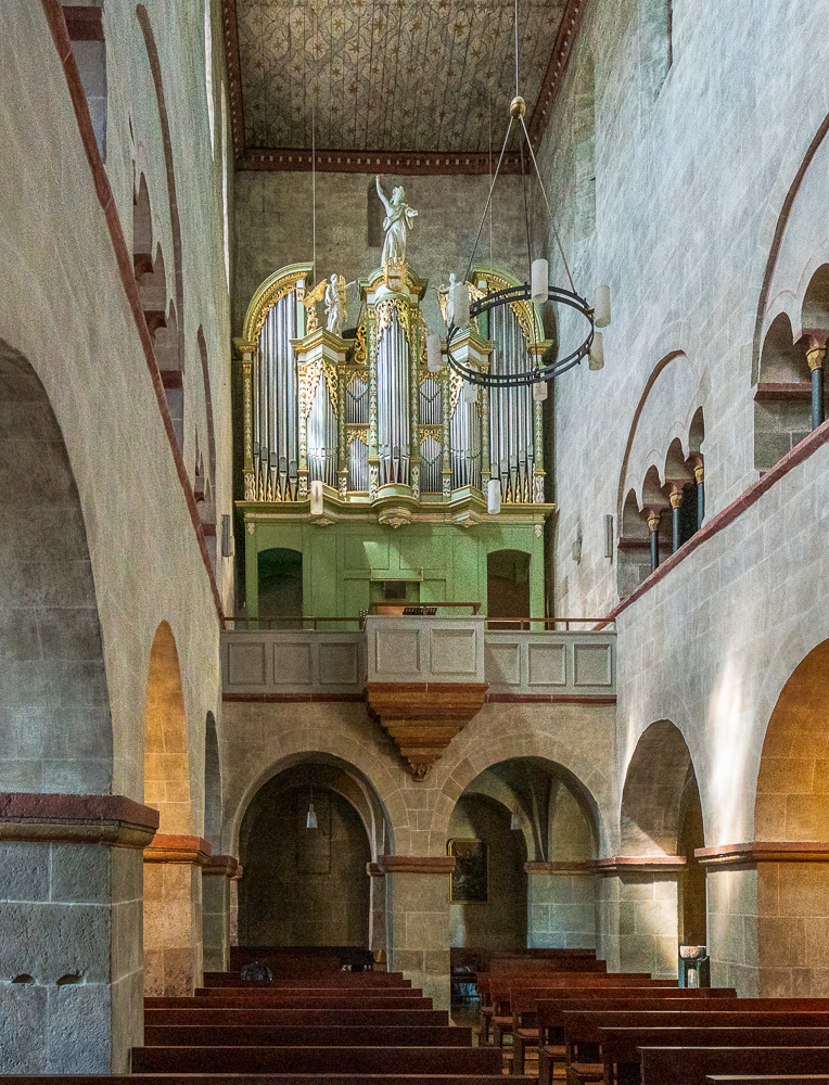 Since about A.D. 700 churches have existed on the site of St. Emmeram in Regensburg, Bavaria. The current building includes chapels and crypts dating as far back as the 8th century. It has gone through the usual series of fires, reconstructions and modifications until the 18th century renovation of the nave and chancel in the Rococo style with further restoration from the 1950s and beyond.