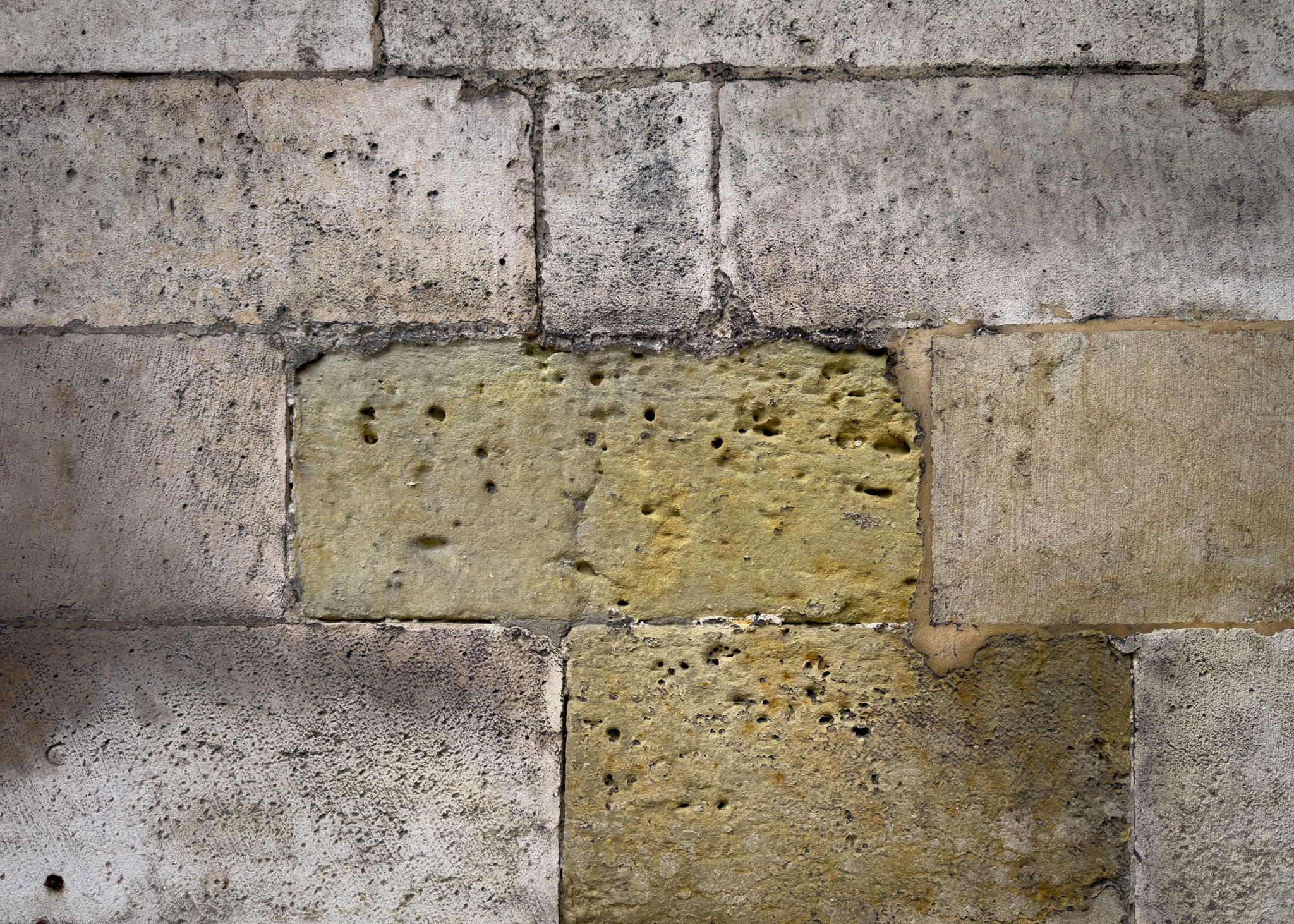 Unlike the churches of the Rhine which are build mostly of red sandstone, Regensburg Cathedral is constructed primarily of limestone. There are however many places where green sandstone was used. The sandstone is soft and much eroded. I asked a couple official looking people about it but could not determine if both type of stone were original or if the mix was the result of prior renovations. If anyone can clarify, please leave a comment. Below is a close-up of the two types of stone.